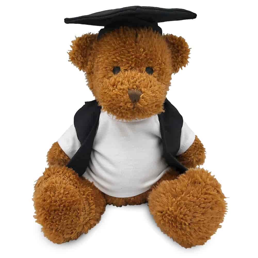 The elastic strap on the mortarboard allows for easy removal and adjustment - perfect for enhancing the versatility of the bear. This option is great for younger children/students and allows for smaller budgets of schools with a speedy turnaround.