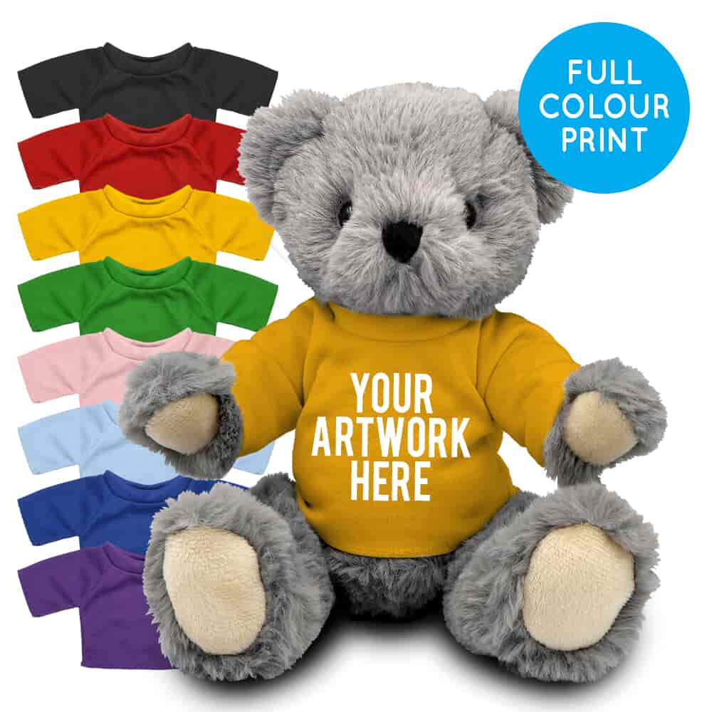 Printed 20cm Archie bear with Coloured t-shirt